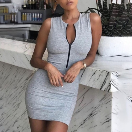 If you like simple style piece,then this dress is sure to strike your mind. Boasts a solid color,with sleeveless,round neck and a fit silhouette,this dress not only can showcase your slender figure,but also can maintain the comfy with its soft and breathable fabric. This is a dress which you can wear in different occasions. So why not buy one?