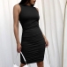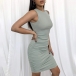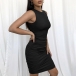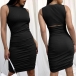 Simple Style Sleeveless Round Neck Solid Color Slim Fit Knit Dress