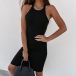 Simple Style Sleeveless Round Neck Solid Color Slim Fit Tank Dress