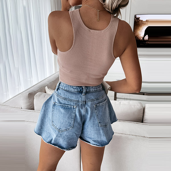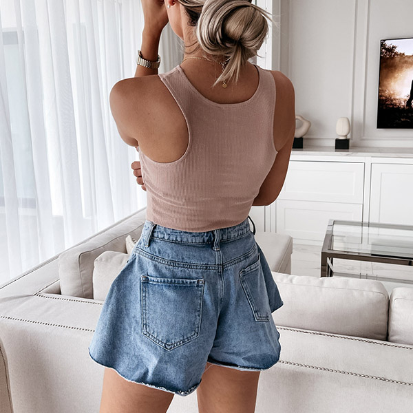 As one of the summer wardrobe essentials,this tank top is worth to have a place in your team. Crafted in a solid color,with sleeveless,round neck and a fit silhouette,this piece knows how to keep you feeling cool and comfy while it showcases your perfect body-line. Another design highlight is that it can be matched with different style bottoms.