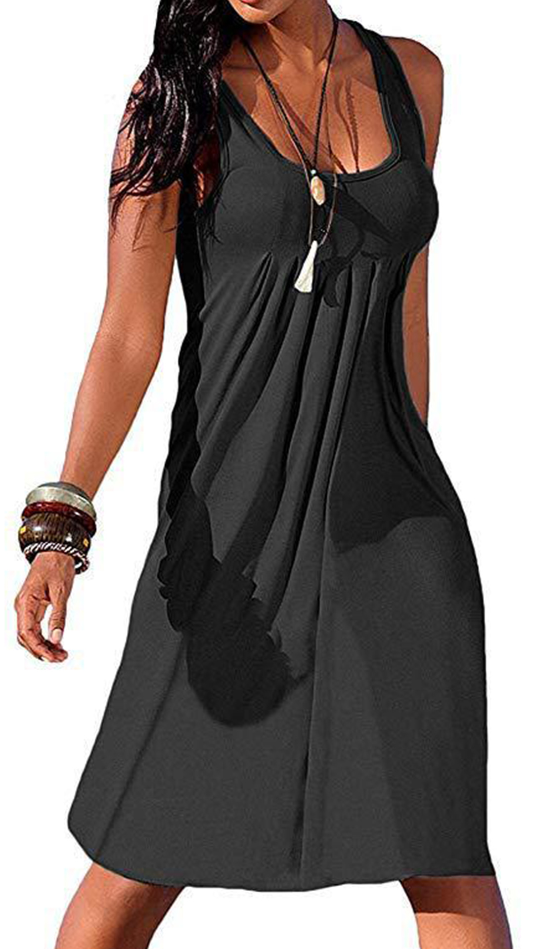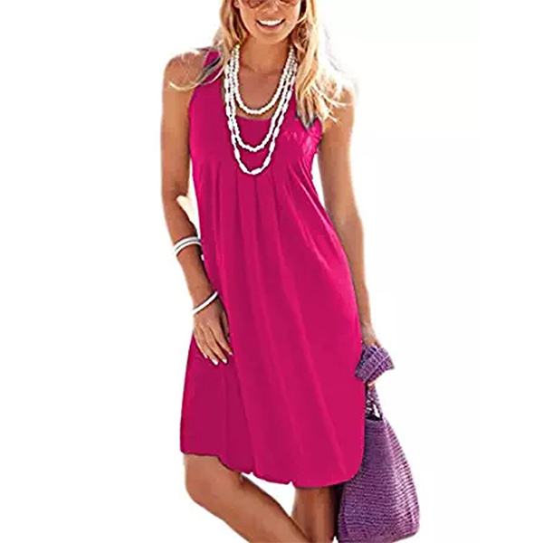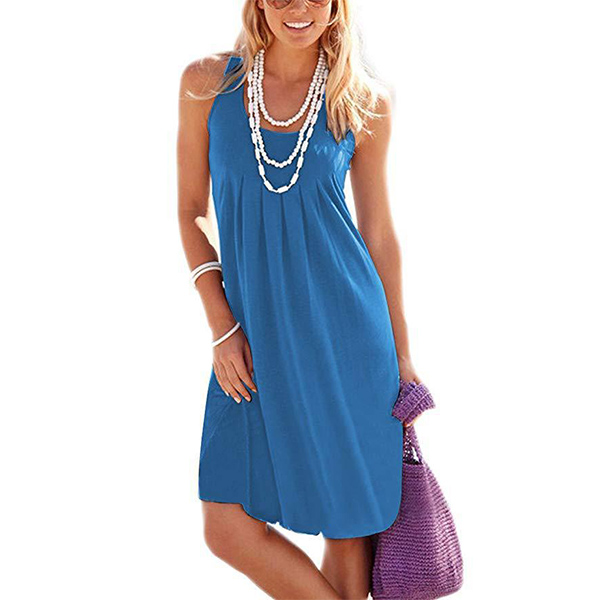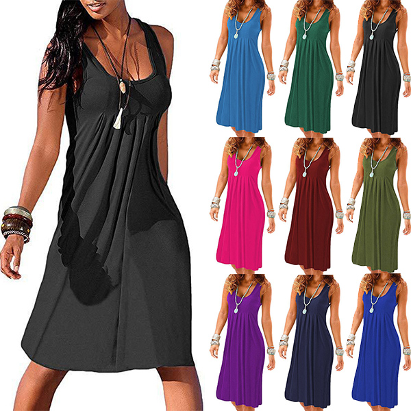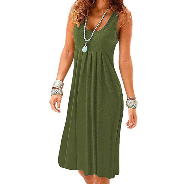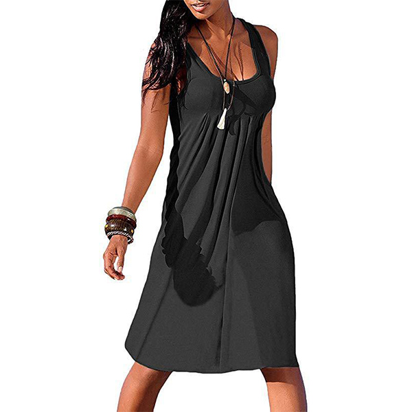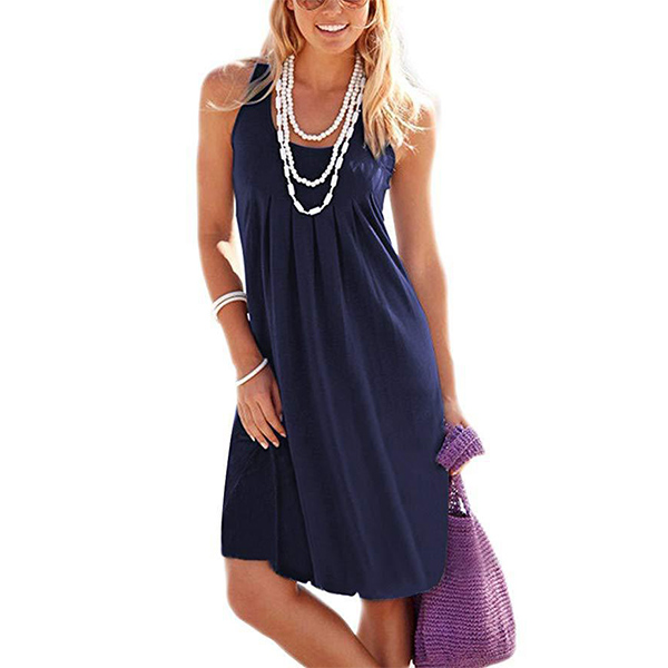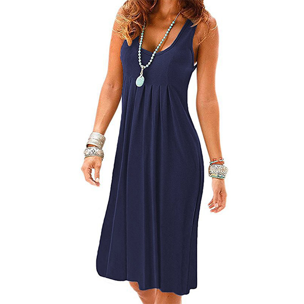 When it comes to keeping it cozy yet stylish, this dress definitely knows how to do it. Solid color style,finished with sleeveless and round neck design,this tank dress that bears a simple design style is worth to be your wardrobe staple in these summer days.