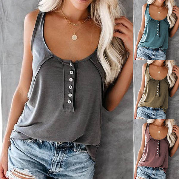 For the hot summer days,this simple,cozy sleeveless top would easily strike your mind. Comes with a solid color,with sleeveless and round neck design,this piece bears a simple design style,but it can ensure the comfy as well as offer you different matching styles.