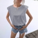 Simple Style Sleeveless Round Neck T-shirt