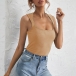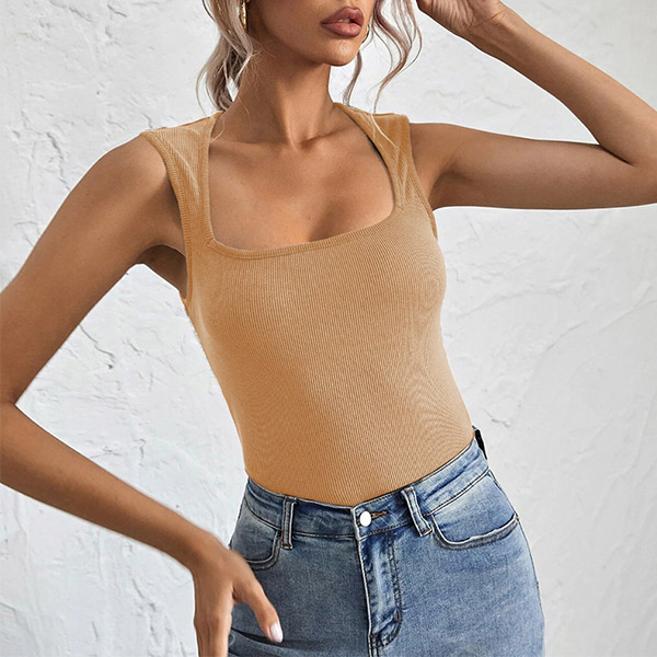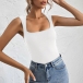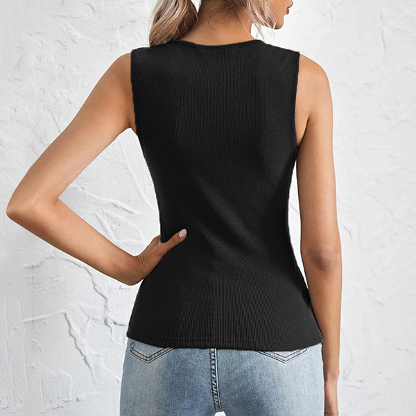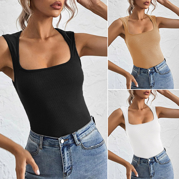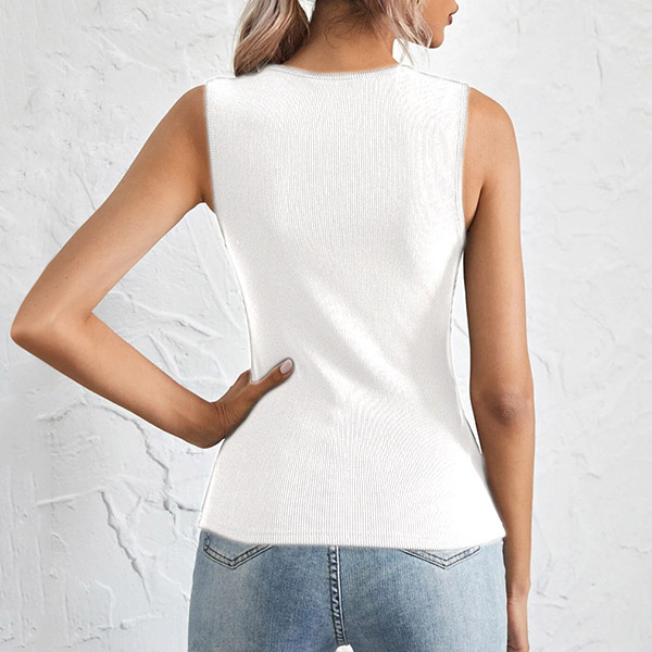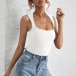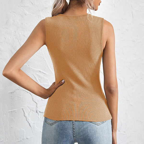 Simple Style Sleeveless U-neck Solid Color Slim Fit T-shirt