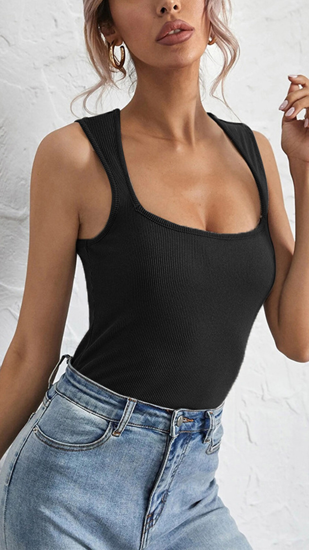 As we all know,the simple style pieces always can offer us more matching styles,this t-shirt is a good example. Comes with a solid color,finished with sleeveless,U-neck and a fit silhouette,this piece not only can keep the comfy,but also can be matched with different style bottoms like shorts,skirts,jeans and so on.