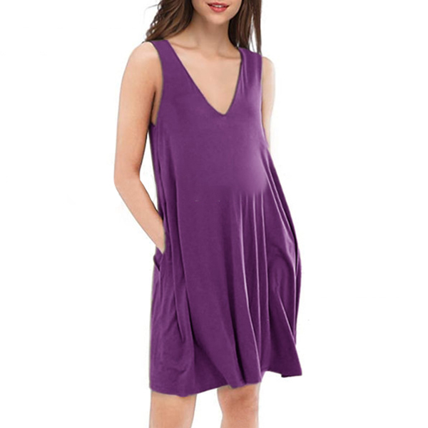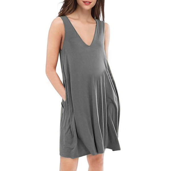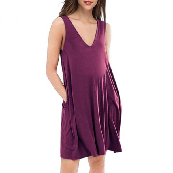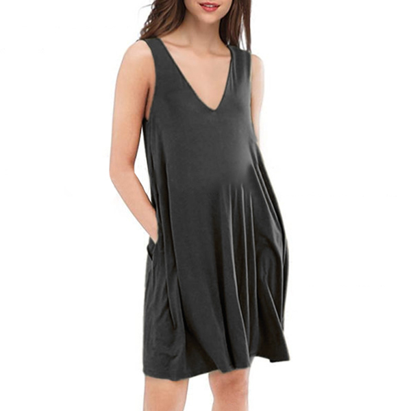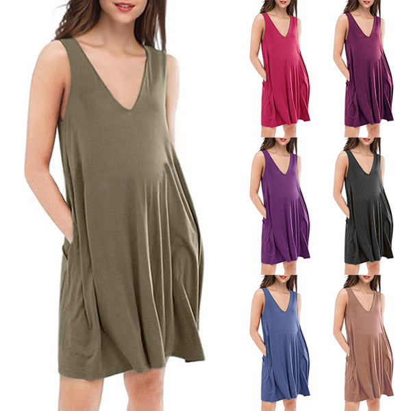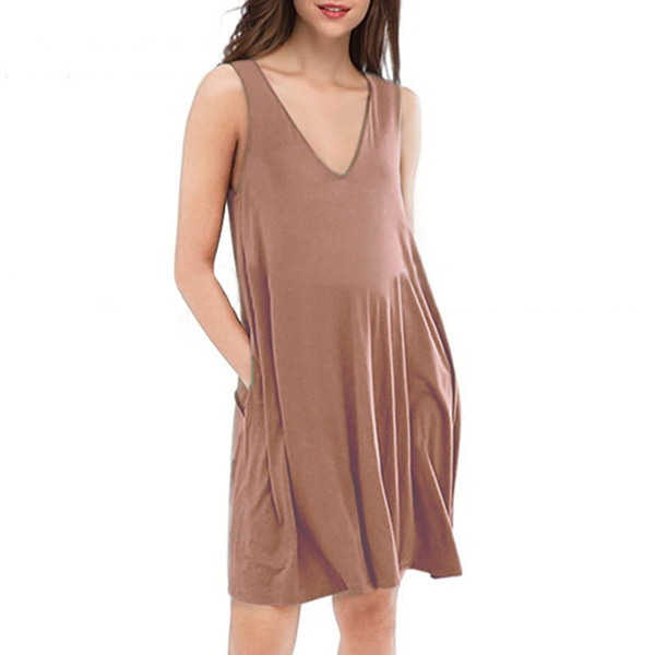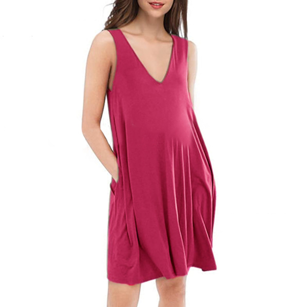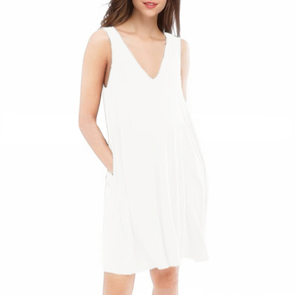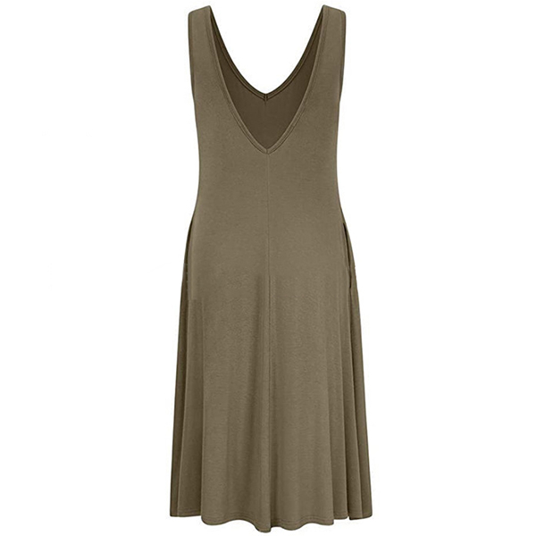 Simple Style Sleeveless V-neck Front-pocket Loose Tank Dress