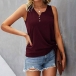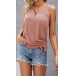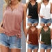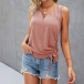 Simple Style Sleeveless V-neck Side-drawstring Solid Color T-shirt