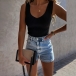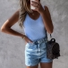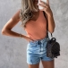 As one of the summer wardrobe essential,this tank top is worth to arouse your attention. Solid color tone design makes it look simple yet generous,while the v-neck and fit silhouette design can make you full of style and charm. No matter matching with a shorts,skirt or jeans,you can hardly go wrong!