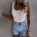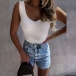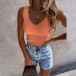 Simple Style Sleeveless V-neck Slim Fit Tank Top
