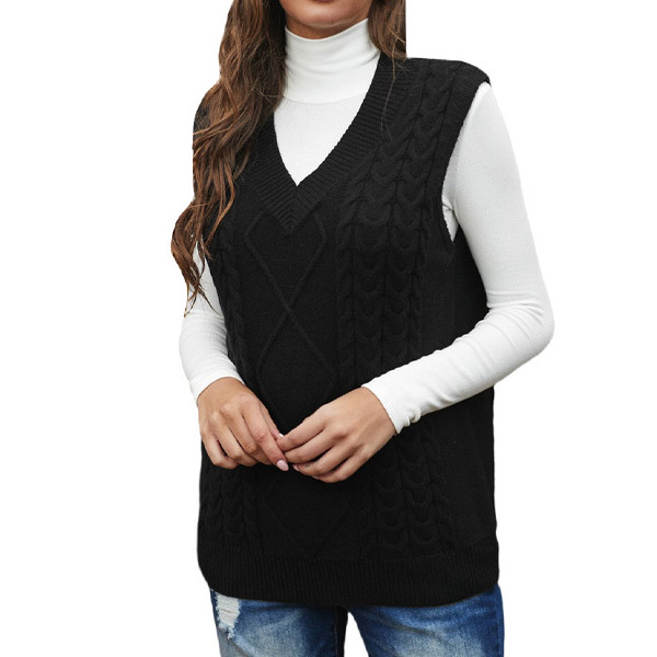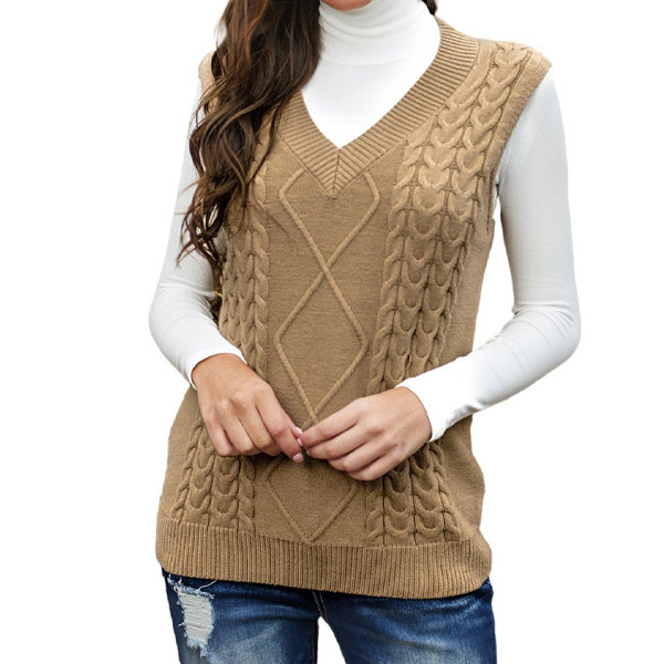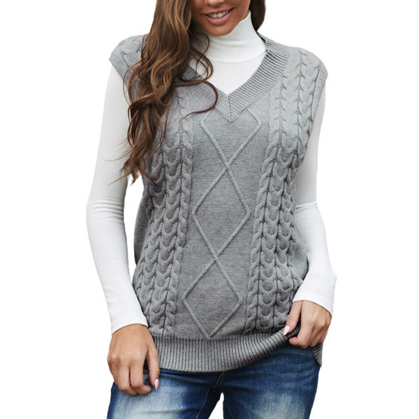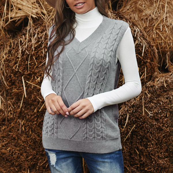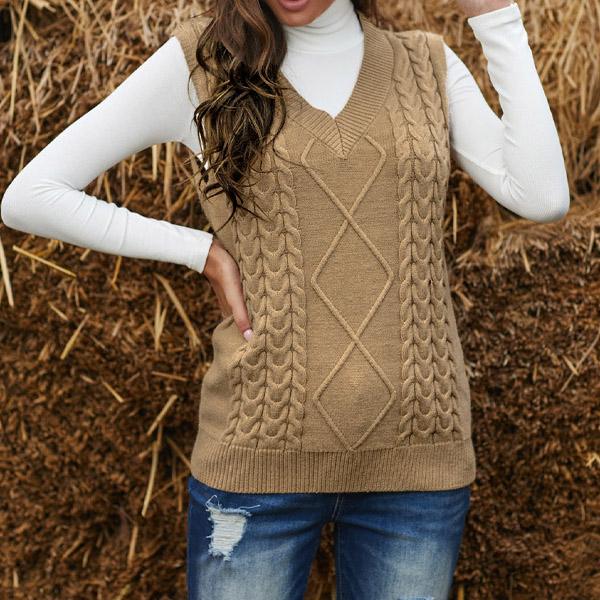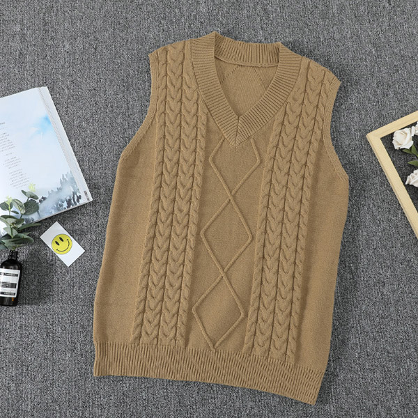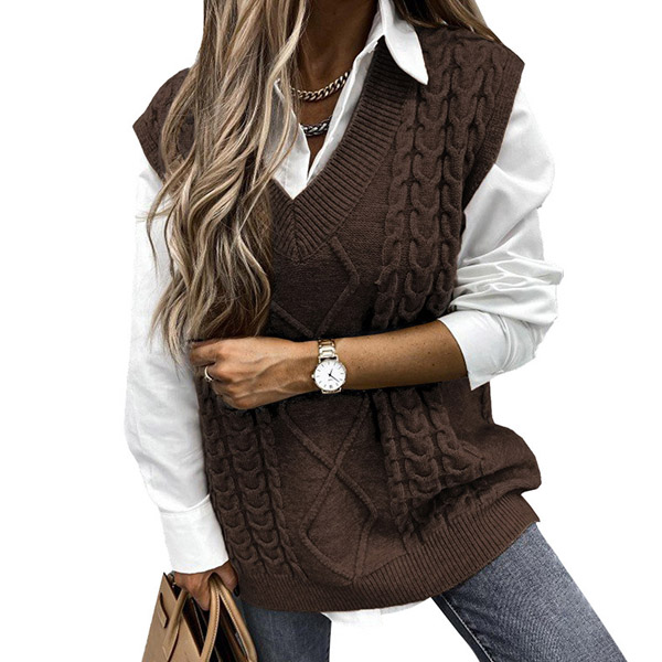 Simple Style Sleeveless V-neck Solid Color Knit Vest