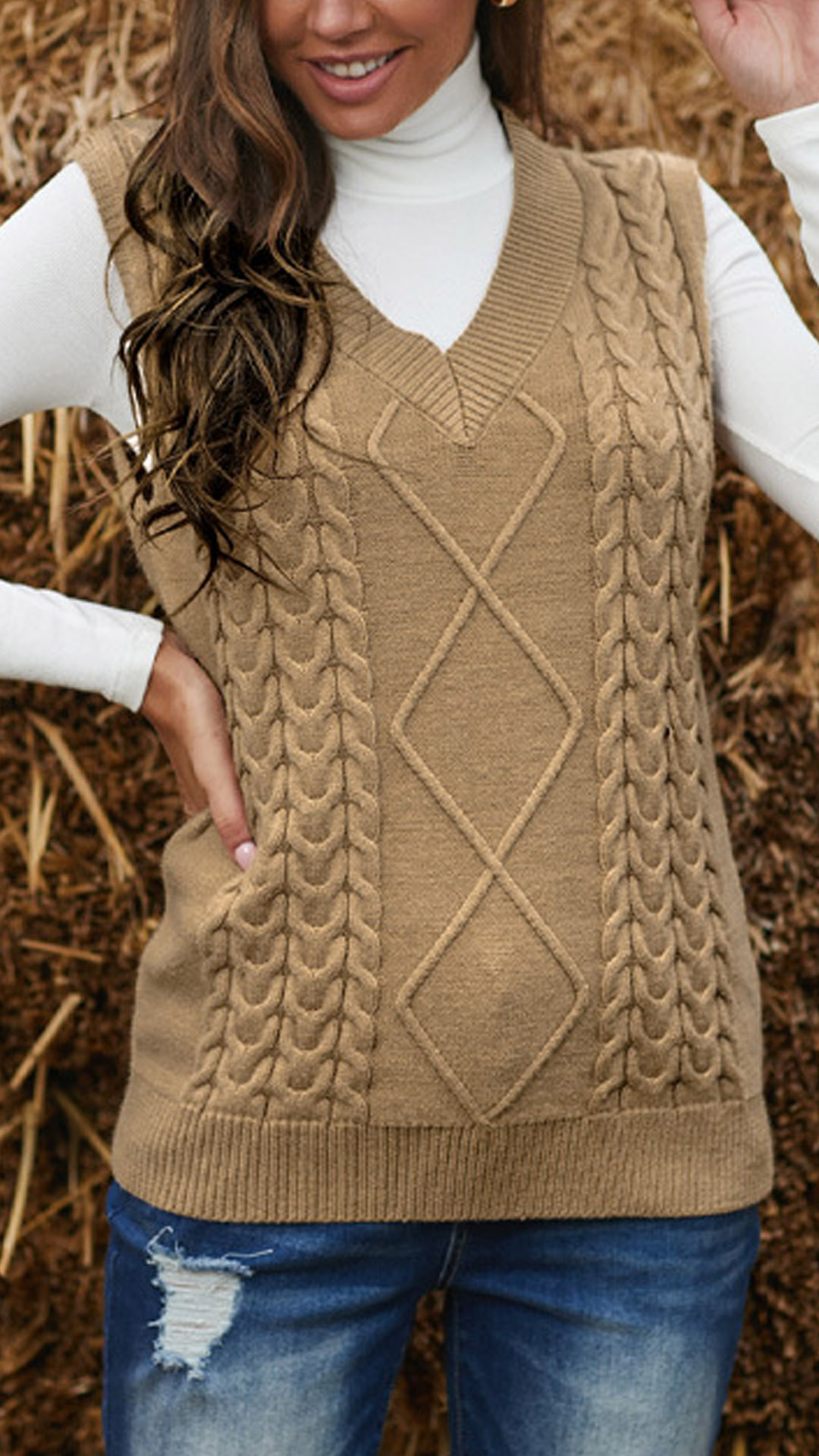 For these neither too hot days nor too cold days,this knit vest would be your wardrobe staple. Solid color style,with sleeveless and v-neck design,this piece bears a simple,classic design style,but it knows how to keep you warm and comfy. You can match it with your shirt to achieve for a more stylish look.