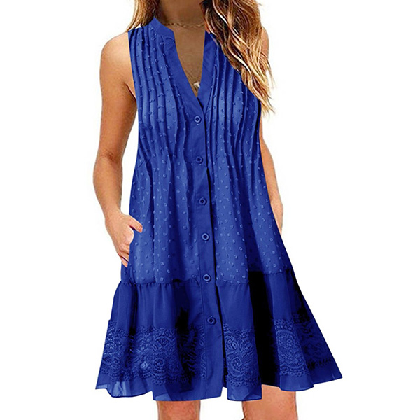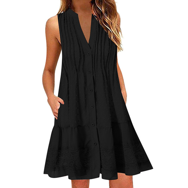 For your summer days,this relaxed yet stylish dress is worth to be your wardrobe staple. Crafted in a solid color,finished with sleeveless,v-neck and a loose silhouette,this dress not only can give you a comfortable day,but also can exude your style and personality. Just add one to your summer wardrobe ensemble!