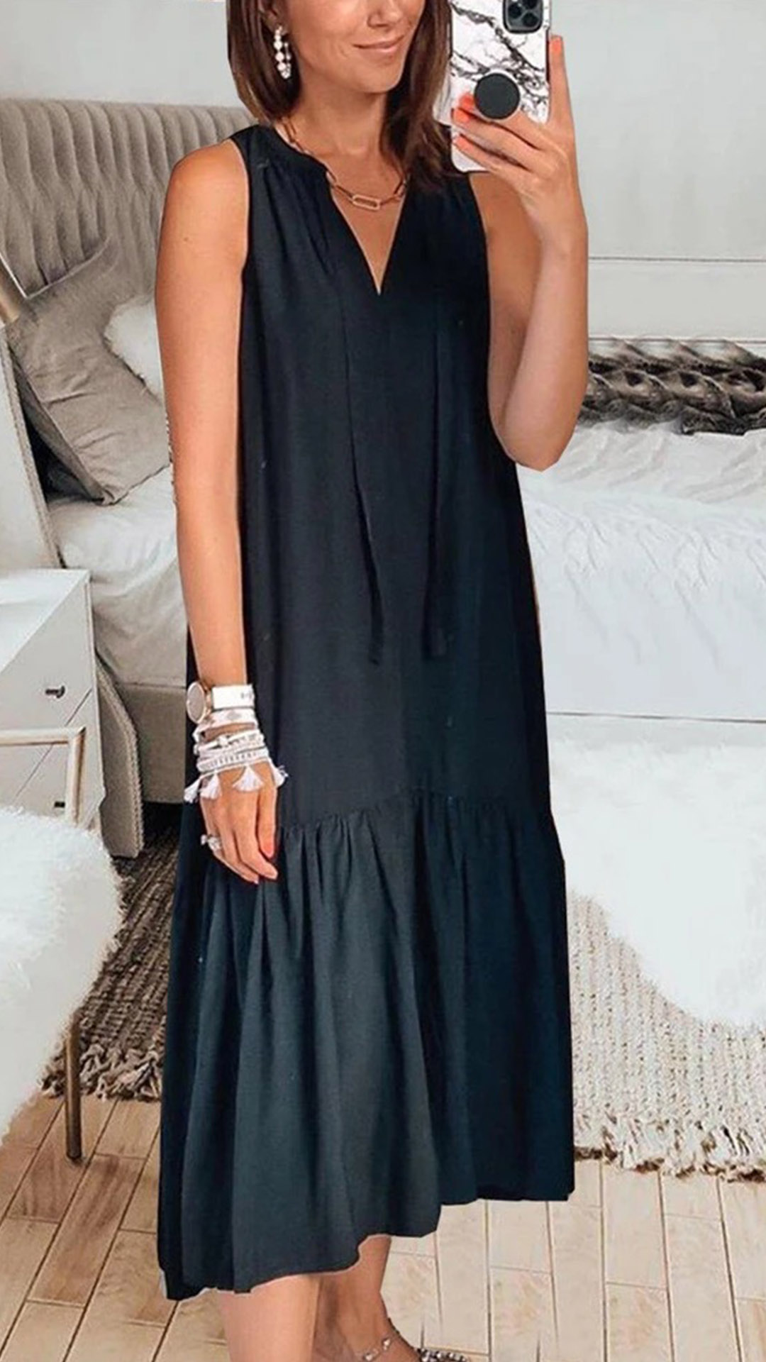 Simple Style Sleeveless V-neck Solid Color Loose Dress
