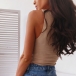 For the summer days,a cozy,stylish and all-match tank top is a wardrobe essential. So how about this piece? Crafted in a solid color,the v-neck design can enhance your feminine appeal,and the fit silhouette design can showcase your perfect body-line. Try to match with a shorts to enjoy your summer days.