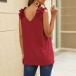 Greet the sunny summer days with this simple,cozy and stylish top. It comes with a solid color,with sleeveless and v-neck design,this piece can promise you a cool and comfortable day with its super soft fabric and loose silhouette. The wrinkled ruffle design at the shoulder part will make it more attractive. Invite it to your summer wardrobe!