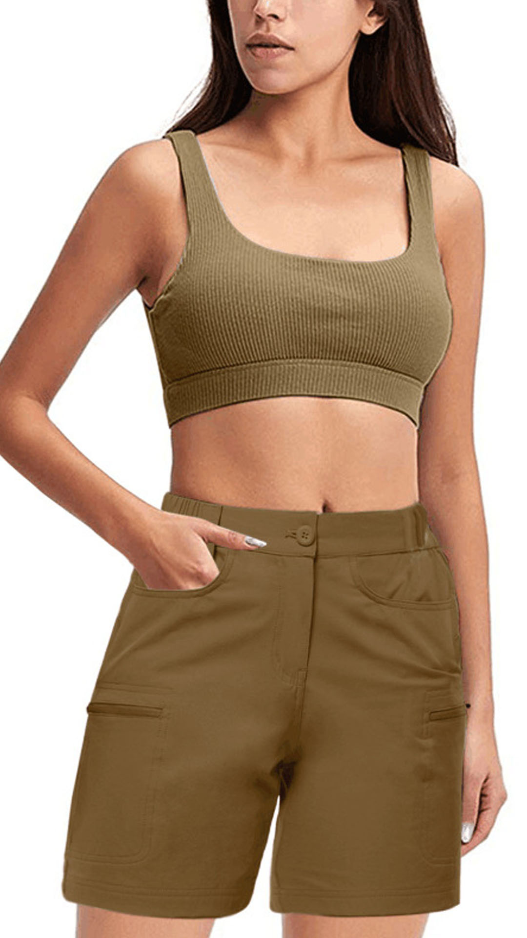 When the summer season hits,this dress is worth to arouse your attention. Solid color tone design makes it look simple yet generous. Finished with high waist,zipper pocket and a clean,fit silhouette,this shorts can showcase your charming legs. You can match with a crop top if you wanna look sexy and flirty.