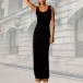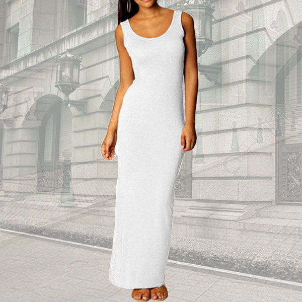 Simple Style Solid Color Round Neck Tank Dress(The size runs small)