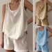 Simple Style Solid Color Round Neck Tank Top + Shorts Two-piece Set