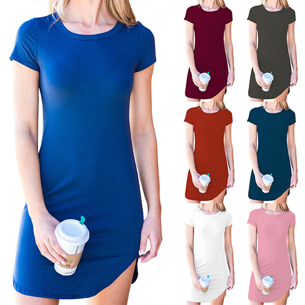 Combines of style and comfy,this dress is worth to have a place in your wardrobe. Solid color style,finished with short sleeve,round neck,an arc hem and a fit silhouette,this dress bears a simple design style,but it can showcase your slender figure. Different colors for your optional.