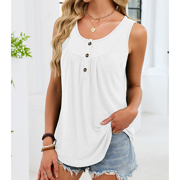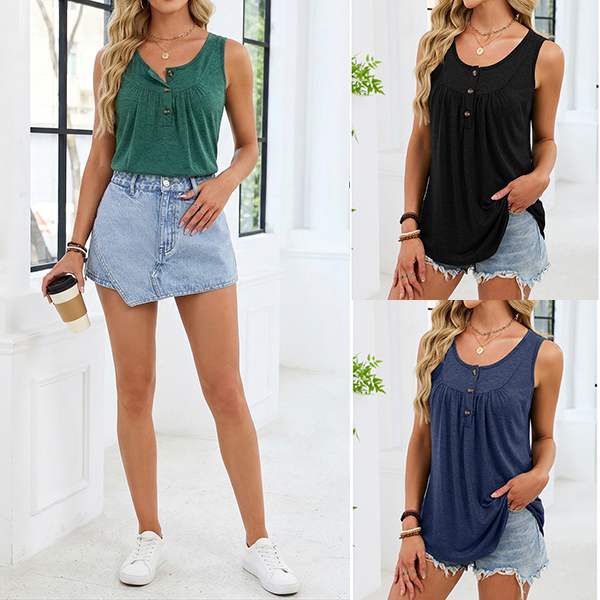 For the hot summer days,this sleeveless top can be your perfect choice. Boasts a solid color,the U-neck design can showcase your charming collarbone,while the lace-up design at the neckline part will add some extra charm. We suggest you matching with a high waist pants ot shorts to start your wonderful day!