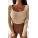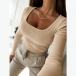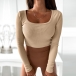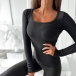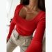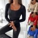 Simple U-neck Long Sleeve Slim-fit Shirt