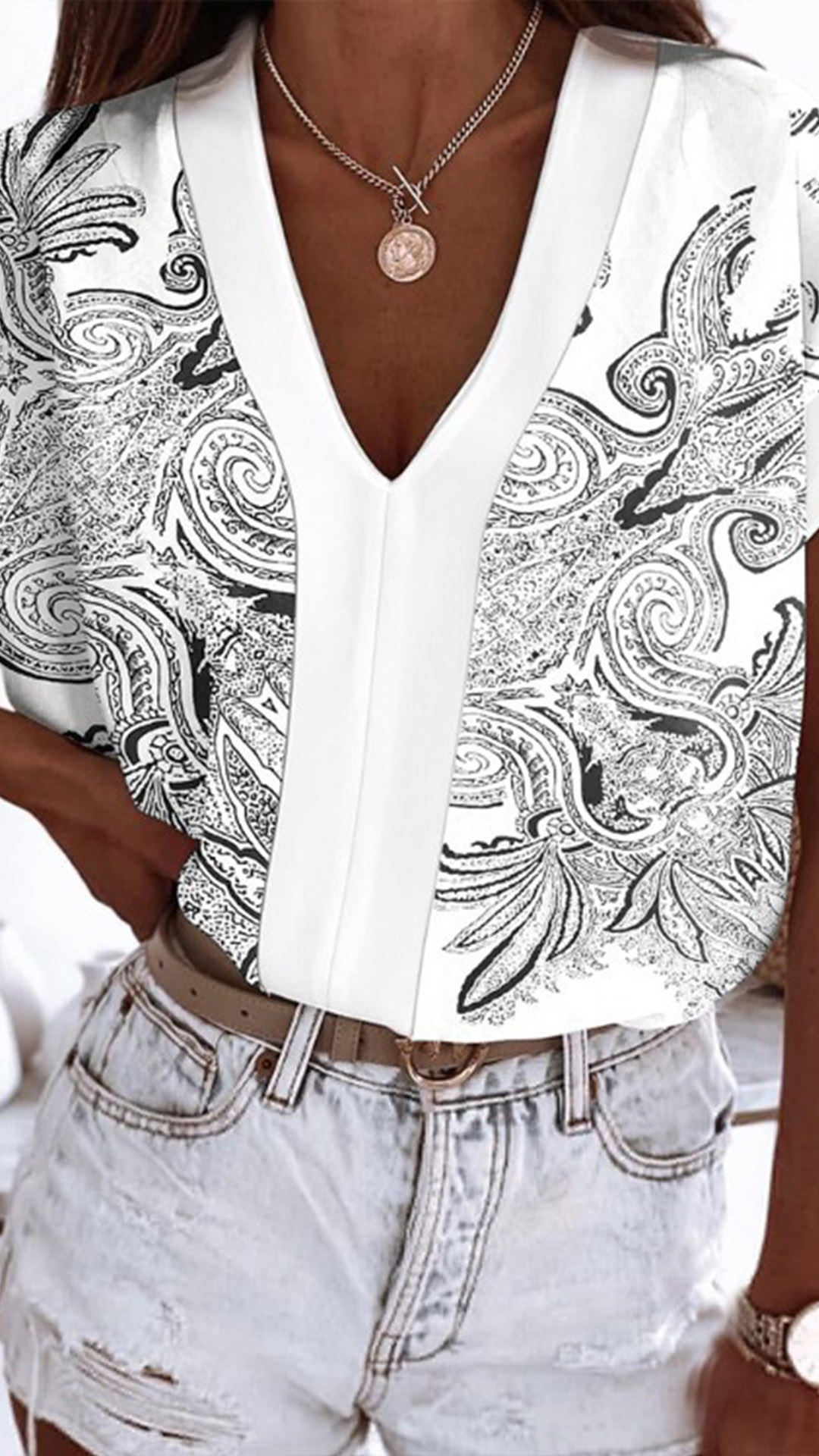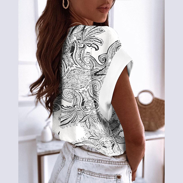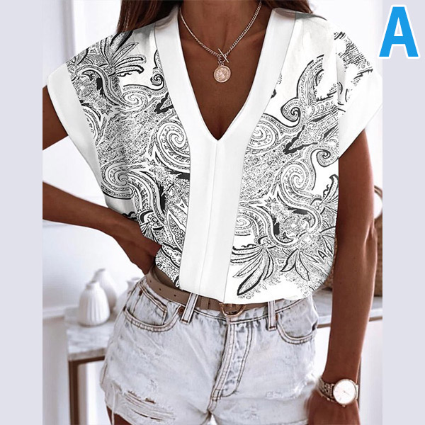 As for a stylish and delicate working look,you can just have a try this wonderful top. Its chic printed details break the simple and dull design style. Crafted from soft and breathable fabric,with short sleeve,v-neck and a loose silhouette,this piece knows how to keep the comfy while it maintains your style.