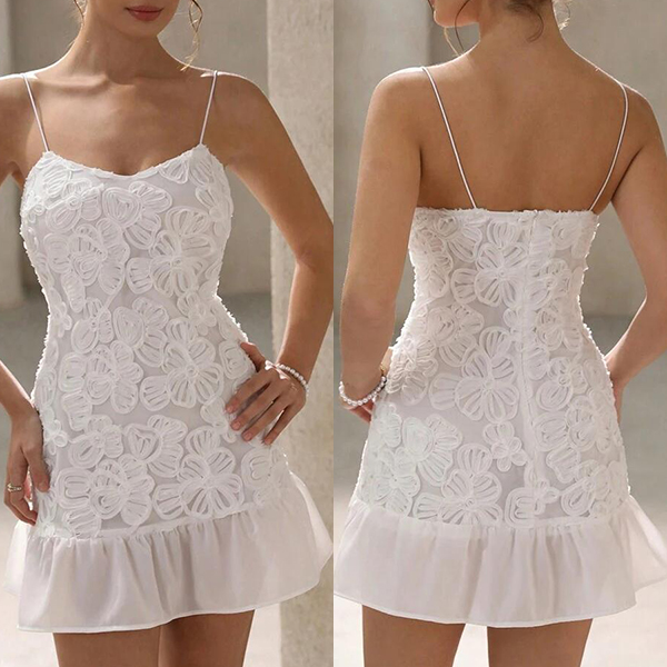 Sleeveless Floral Patchwork Mini Dress with Ruffle Hem