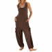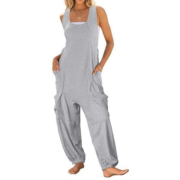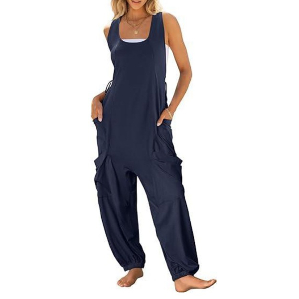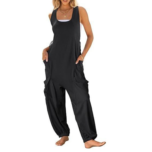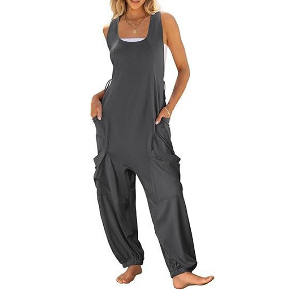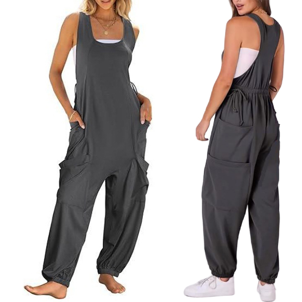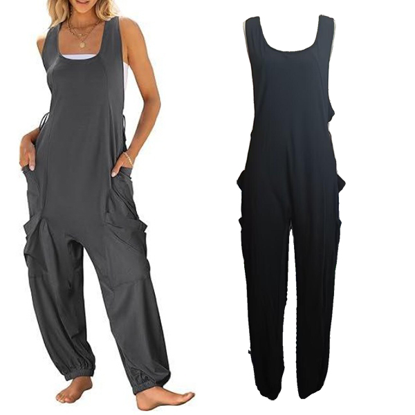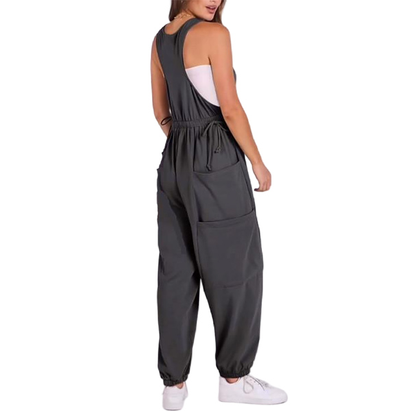 Sleeveless Harem Pants Bodysuit with Suspender and Double Pockets