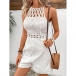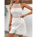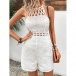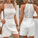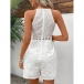 Fashion Mesh-net Crew Neck Sleeveless Hollowout Jacquard Romper