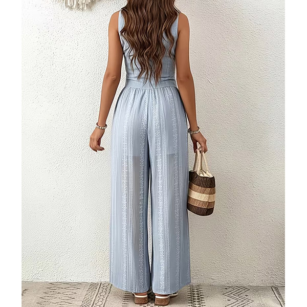 Sleeveless Tie-Waist Vest and Wide-Leg Pants Two-Piece Set - Solid Color Versatile Outfit