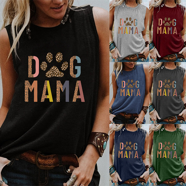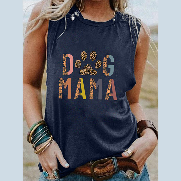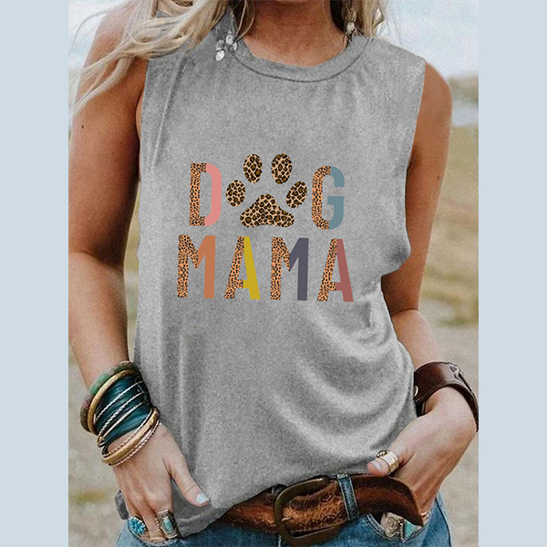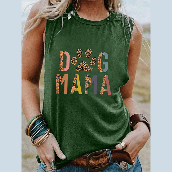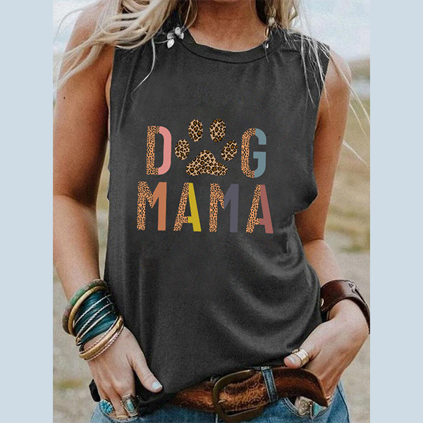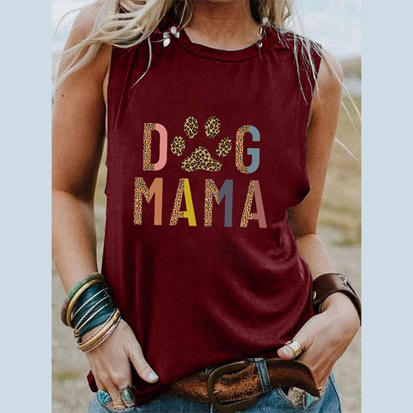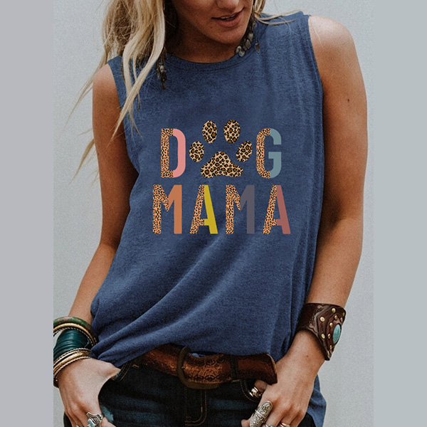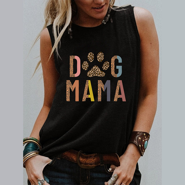Sleeveless Vest "Dog Mama" Lettering Color Print