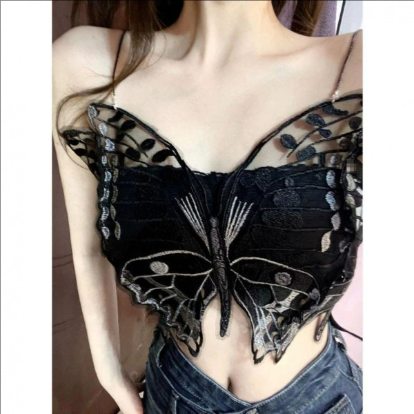 Slim-Fit Lace Embroidered Butterfly Camisole Vest