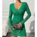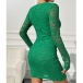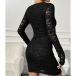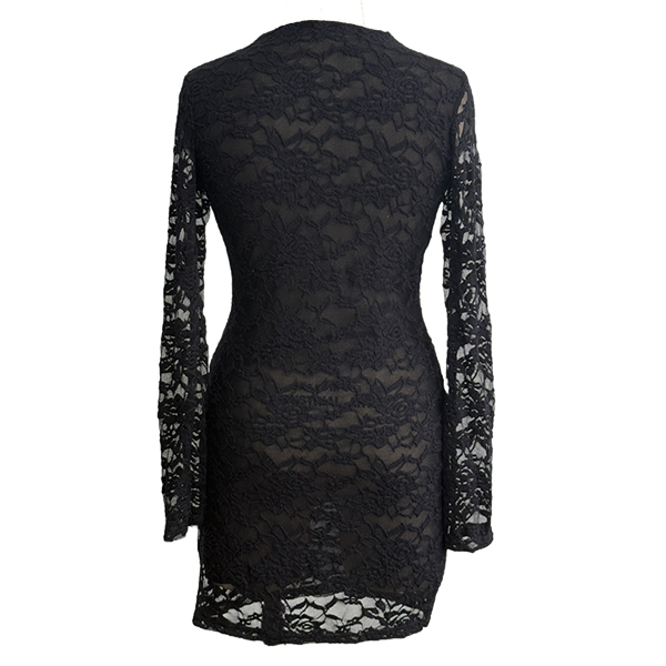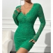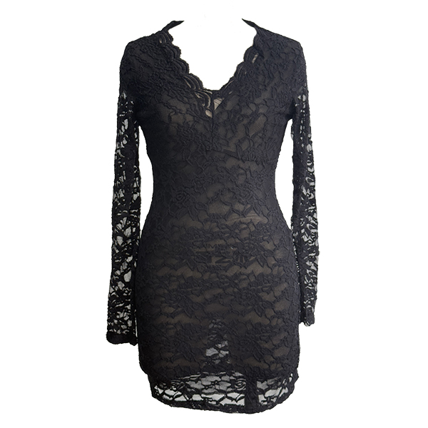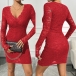 Slim-Fit Long-Sleeve V-Neck Dress with Lace Detail