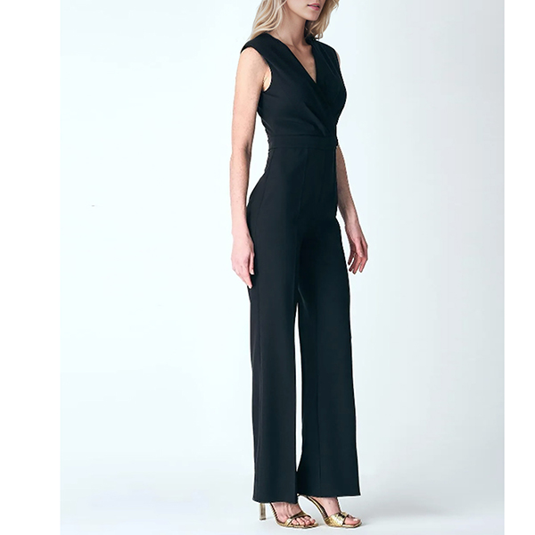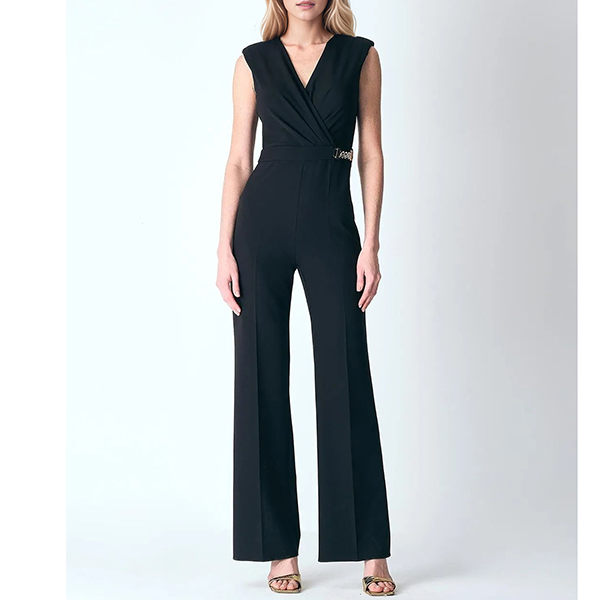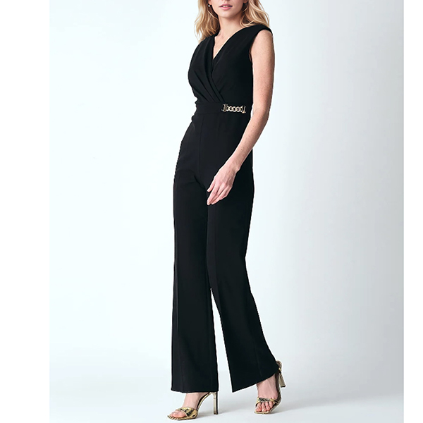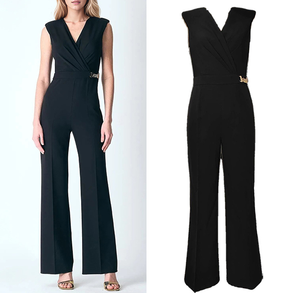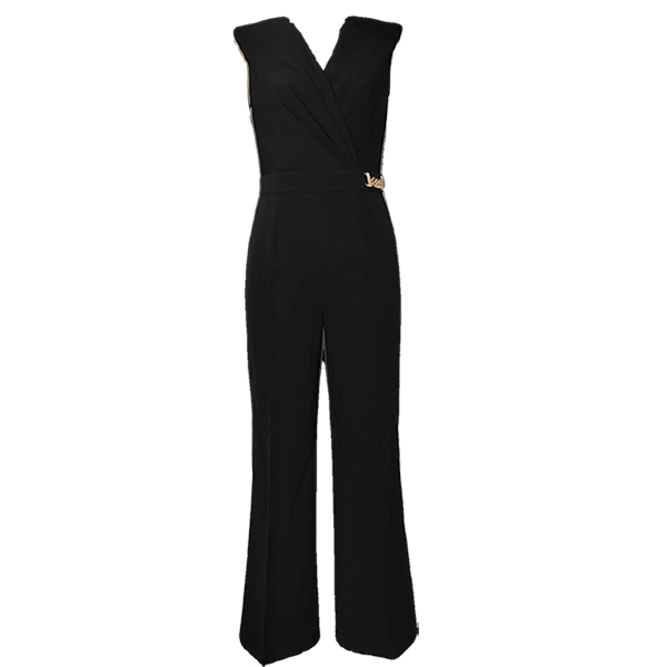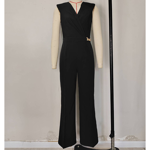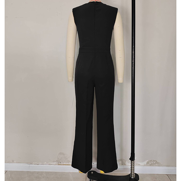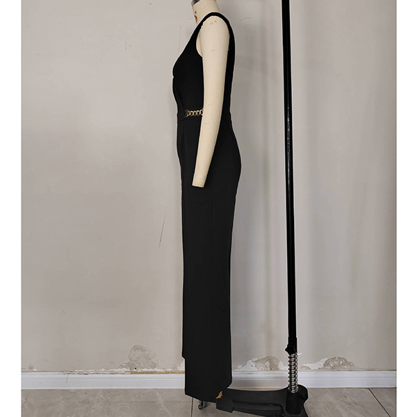 Elegant Solid Color V-neck Sleeveless Chain Straight-cut Jumpsuit