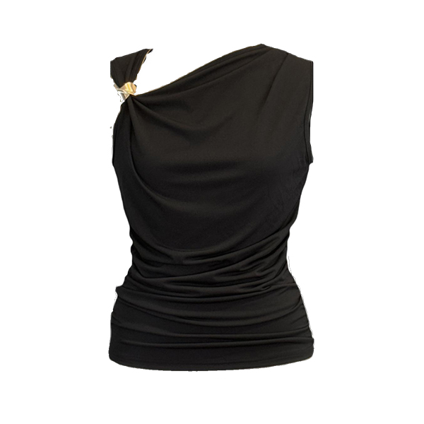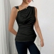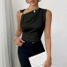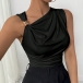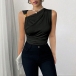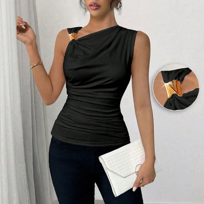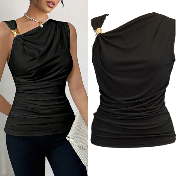 Fashion Bucklet Slant Shoulder Sleeveless Ruched Shirt