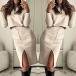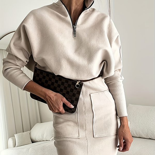 Slim Fit Two-Piece Set with Zippered Stylish Top and Slit Skirt