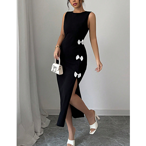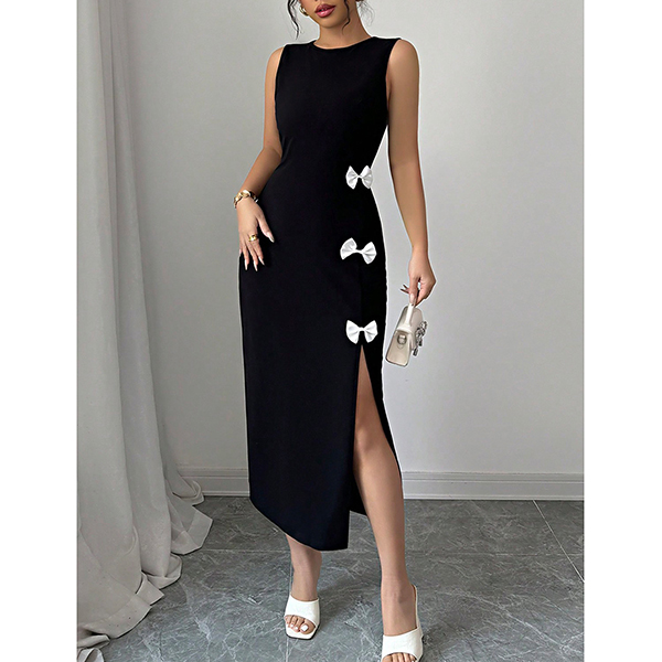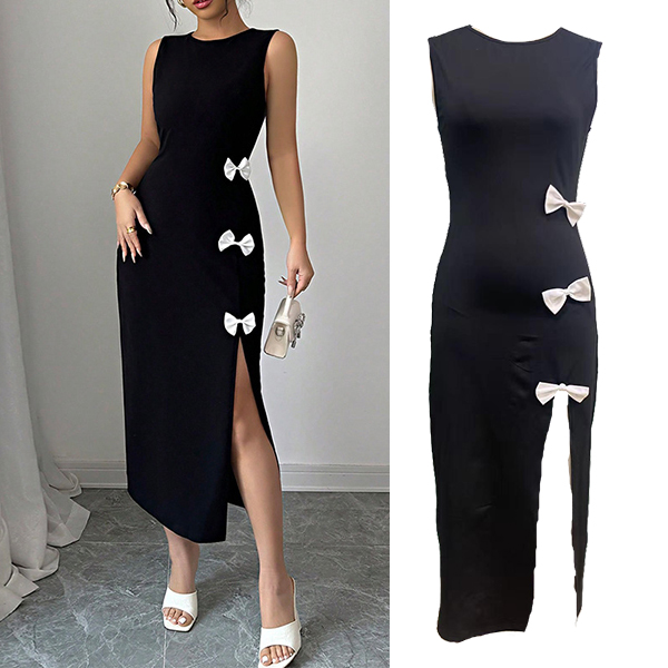 Slim Fit Vest Dress with Bowknot Detail