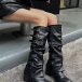 Slouched Pointed-Toe Combat Boots with Dual Buckles