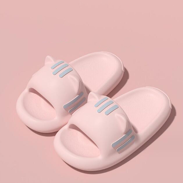 Chaussons d'oreille de chat doux Chaussures de maison à semelle épaisse antidérapantes