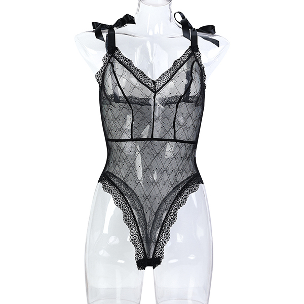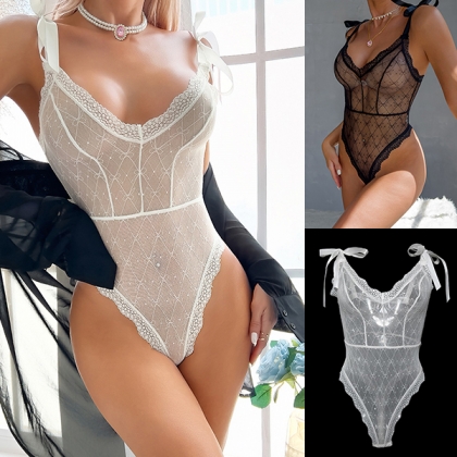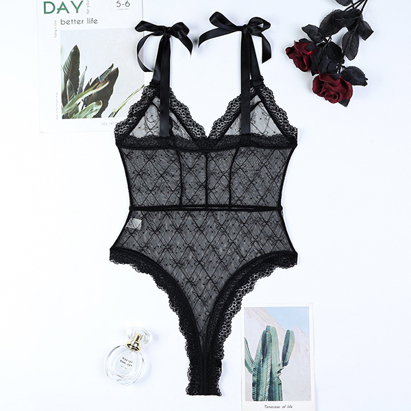 Soft Elastic Lace Lingerie featuring Bow Accent