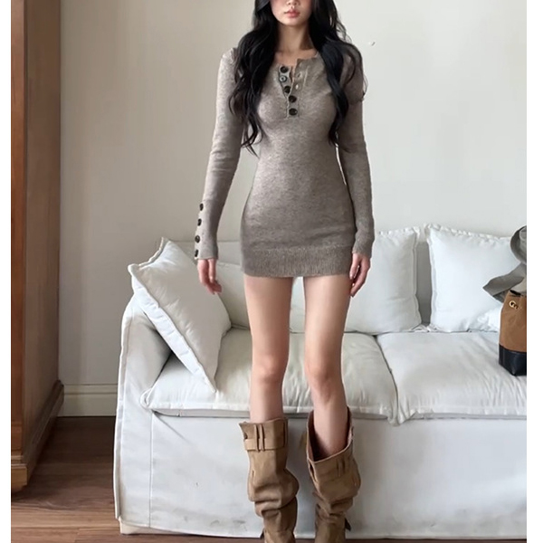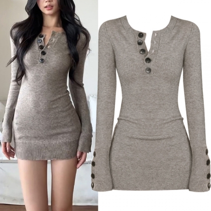 This cozy dress features comfortable soft knit styling with classic button-front construction and flattering bodycon design for contemporary casual elegance. Wanna have a try?
