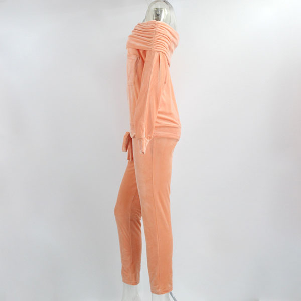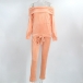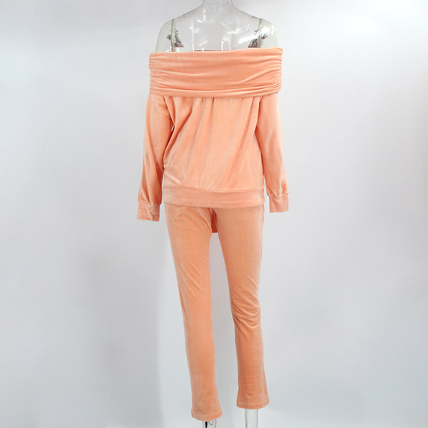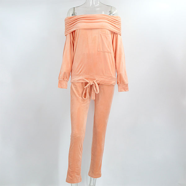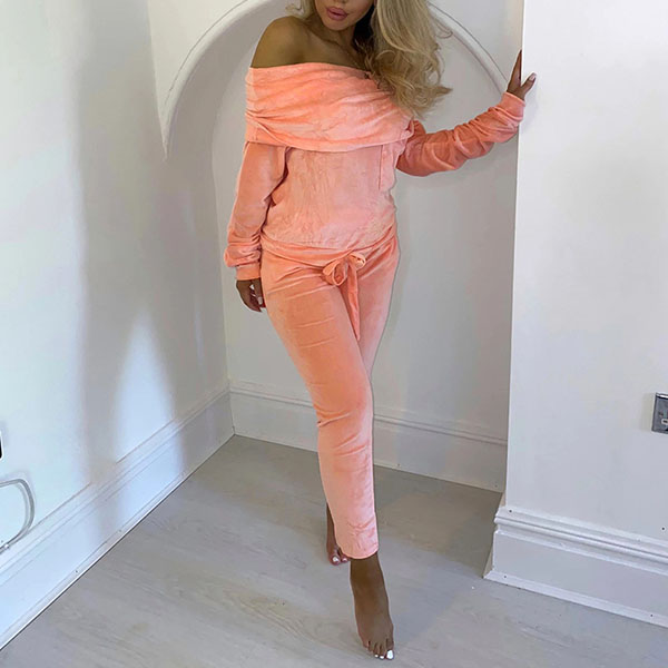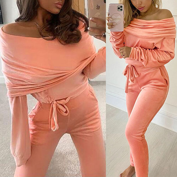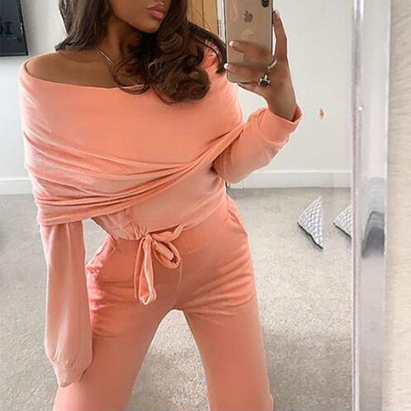 Solid Color Boat Neck Long Sleeve Top+Pants Two-piece Set