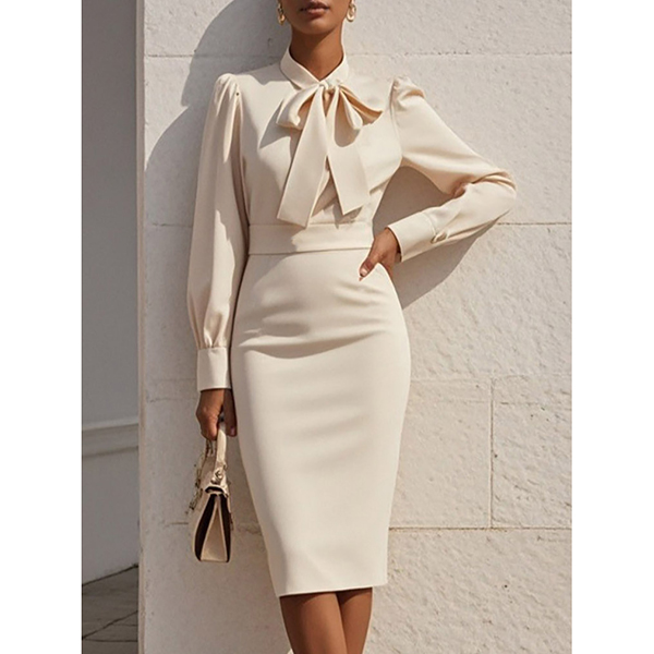 Solid Color Bow Tie Waist Dress