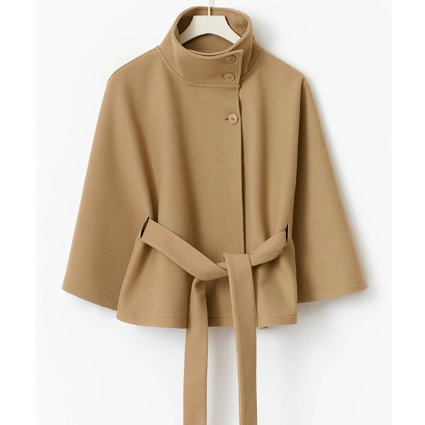 Fashion Stand Collar Button Self-tie Cape