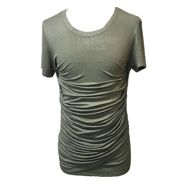 Solid Color Fitted Pleated Tee with Short Sleeves