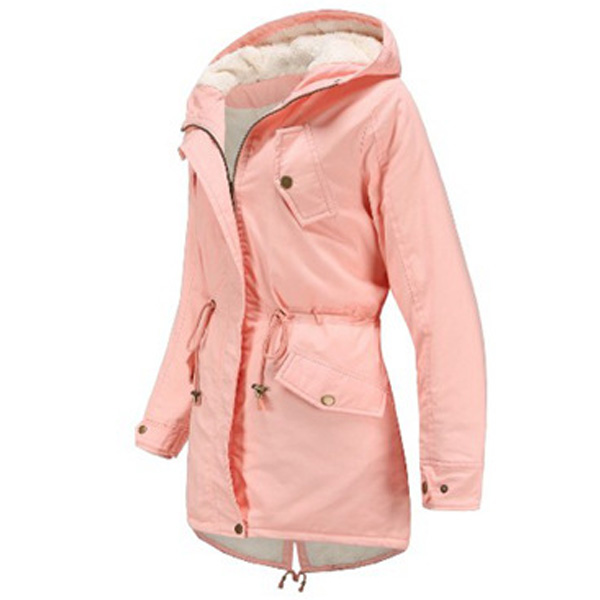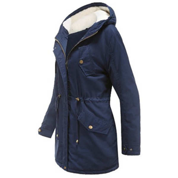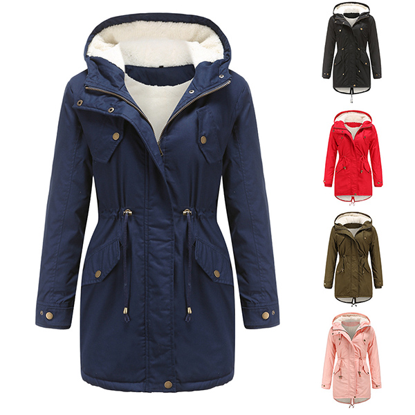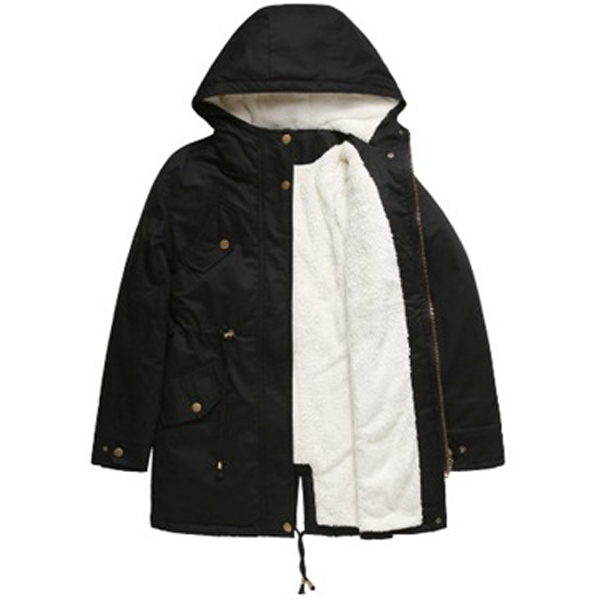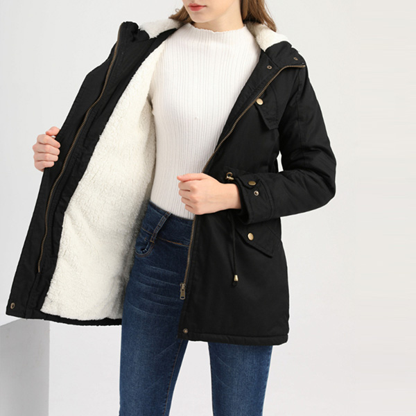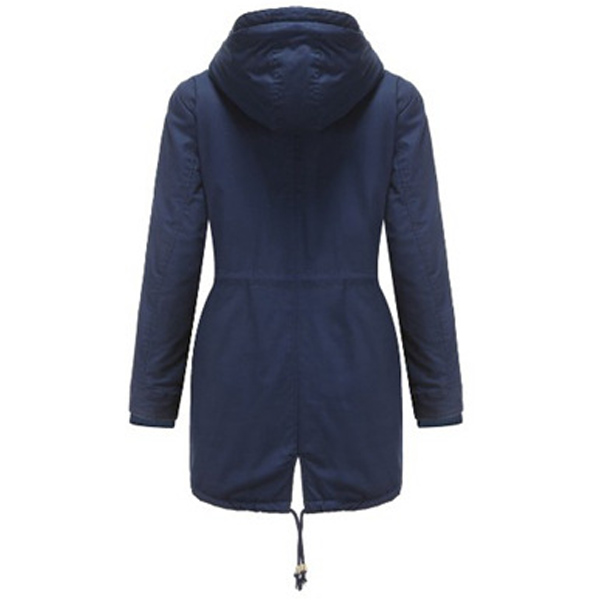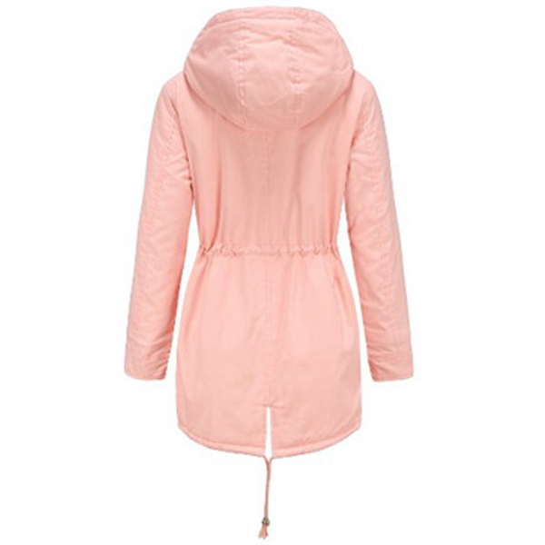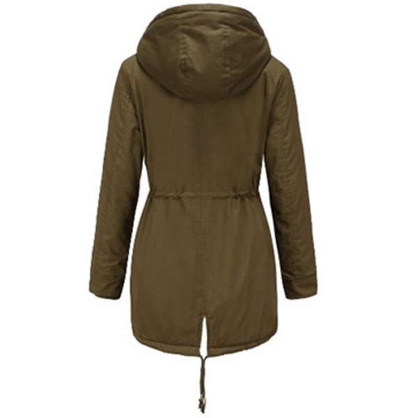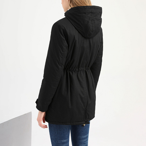 This is a fashionable cotton padded coat with a mid length design and plush lining. With the hood, it is also super warm. All your bottoming pieces in the wardrobe can be matched. Designed with drawstring on the waist, this piece can make you body line slimmer.