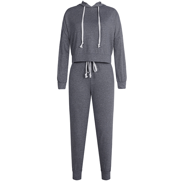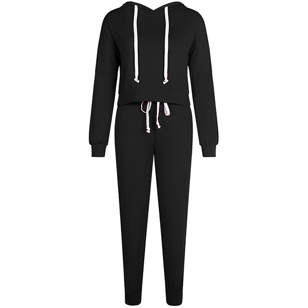 Solid Color Hooded String Long Sleeve Sweatshirt+Pants Two-piece Set