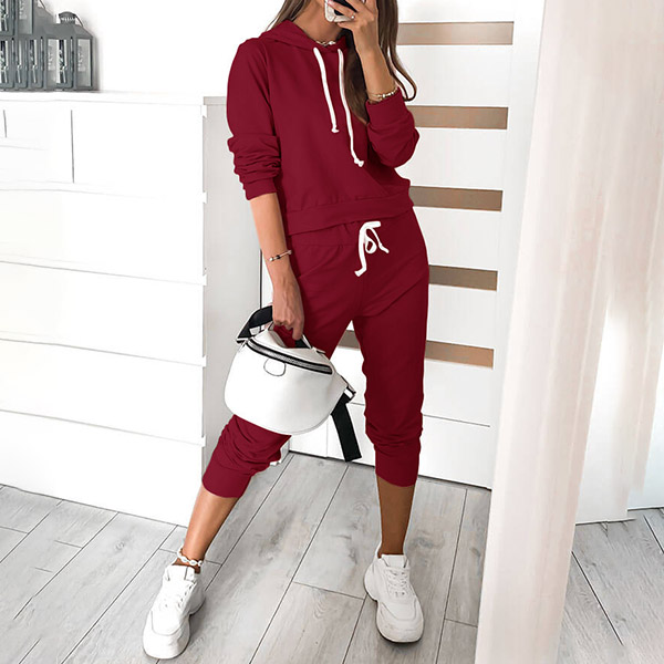 Hooded sweatshirt has always occupied an important place in the matching field. Strong practicality and collocation, which is loved by people of all ages. This two-piece set consists of a long sleeve hooded top and a pants,which can give you a comfortable day with its soft and breathable fabric. You cannot without it when you need do sports or take excise. It is the essential cloth in your wardrobe.