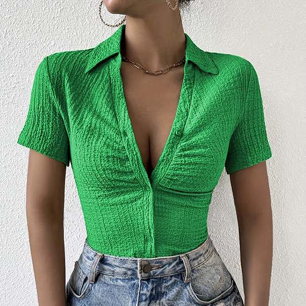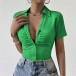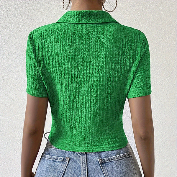 Solid Color Knit Crop Top Short Sleeve Breathable Shirt