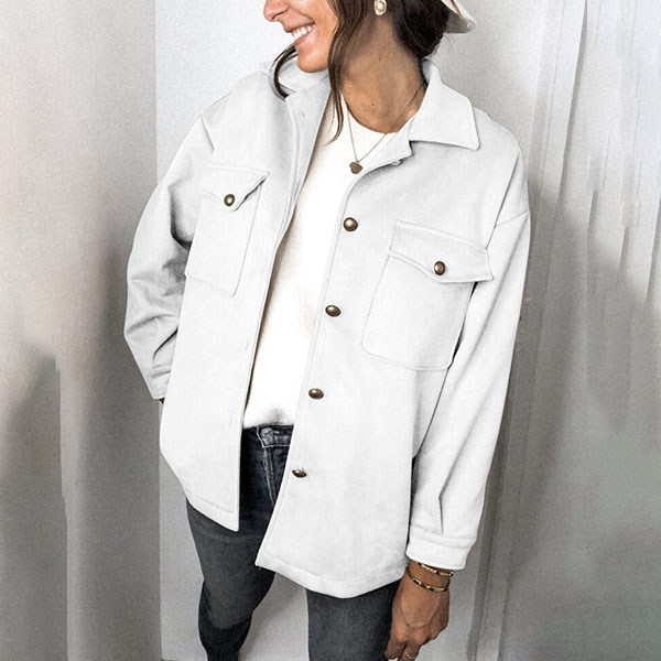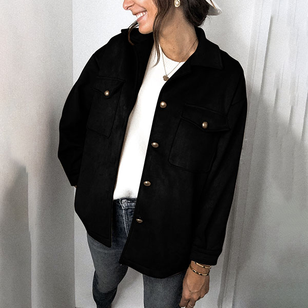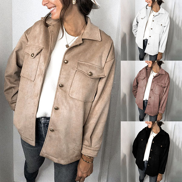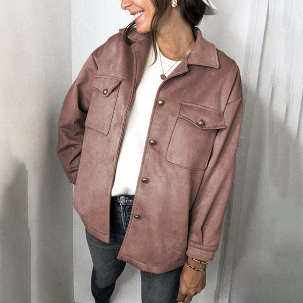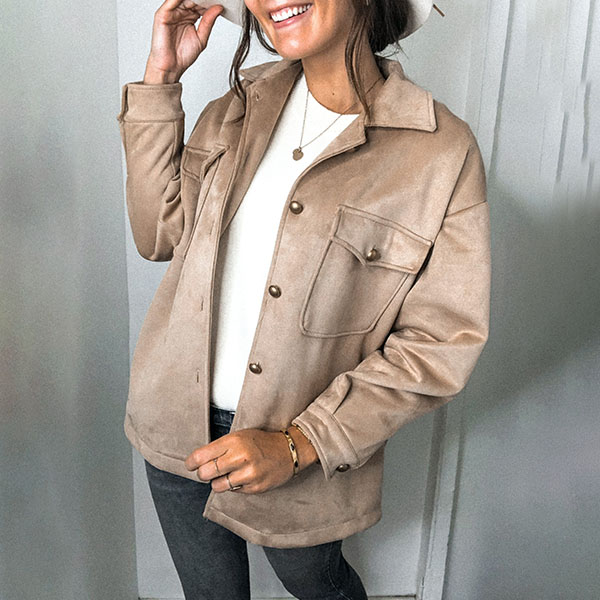 This faux suede jacket whose fabric is soft and fine and gives people a kind of elegant and natural feeling is look much advanced than other coat designed by ordinary fabrics. Combined with single breasted and double pockets design, this piece can make you look full of vitality and energy! It is worth to be your wardrobe staple when the days get cold.